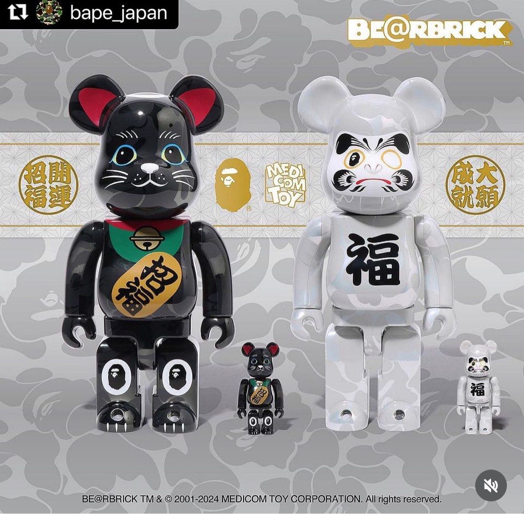 BE@RBRICK x Bape 招财猫 黑色 & 达摩白色 100%+400% bearbrick 幸运猫 招财猫
